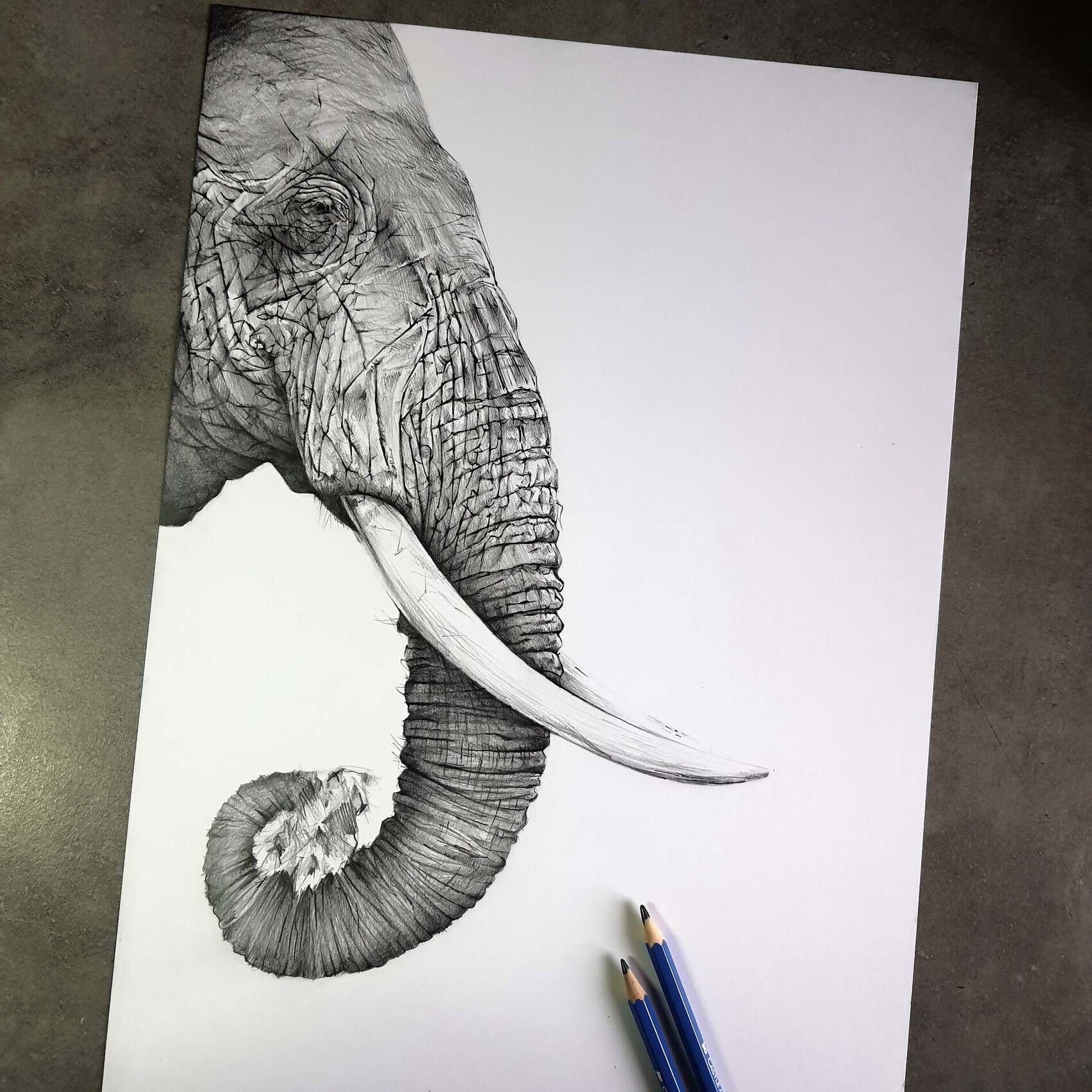 Dessin format 29,7x42cm Crayon Faber Castell 6B 6h de dessin Une nouvelle réalisation sur mon animal fétiche :-) #damienpaccalin #elephant #dessin