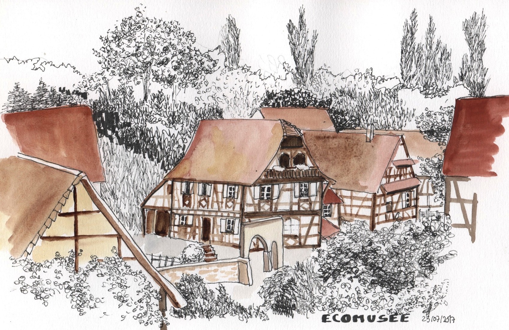 Croquis aquarellé à base de pigments naturels élaborés personnellement