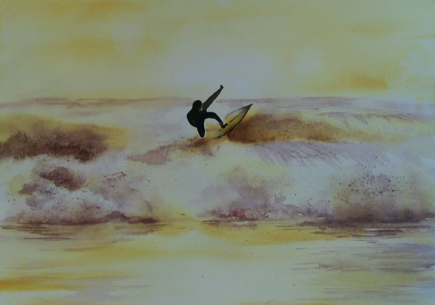 Bonsoir Danyma. ..une tres belle aquarelle et un beau travail sur les vagues j adore ces couleurs chaudes ....vraiment c est beau. ..bonne soirée a vous bien amicalement
