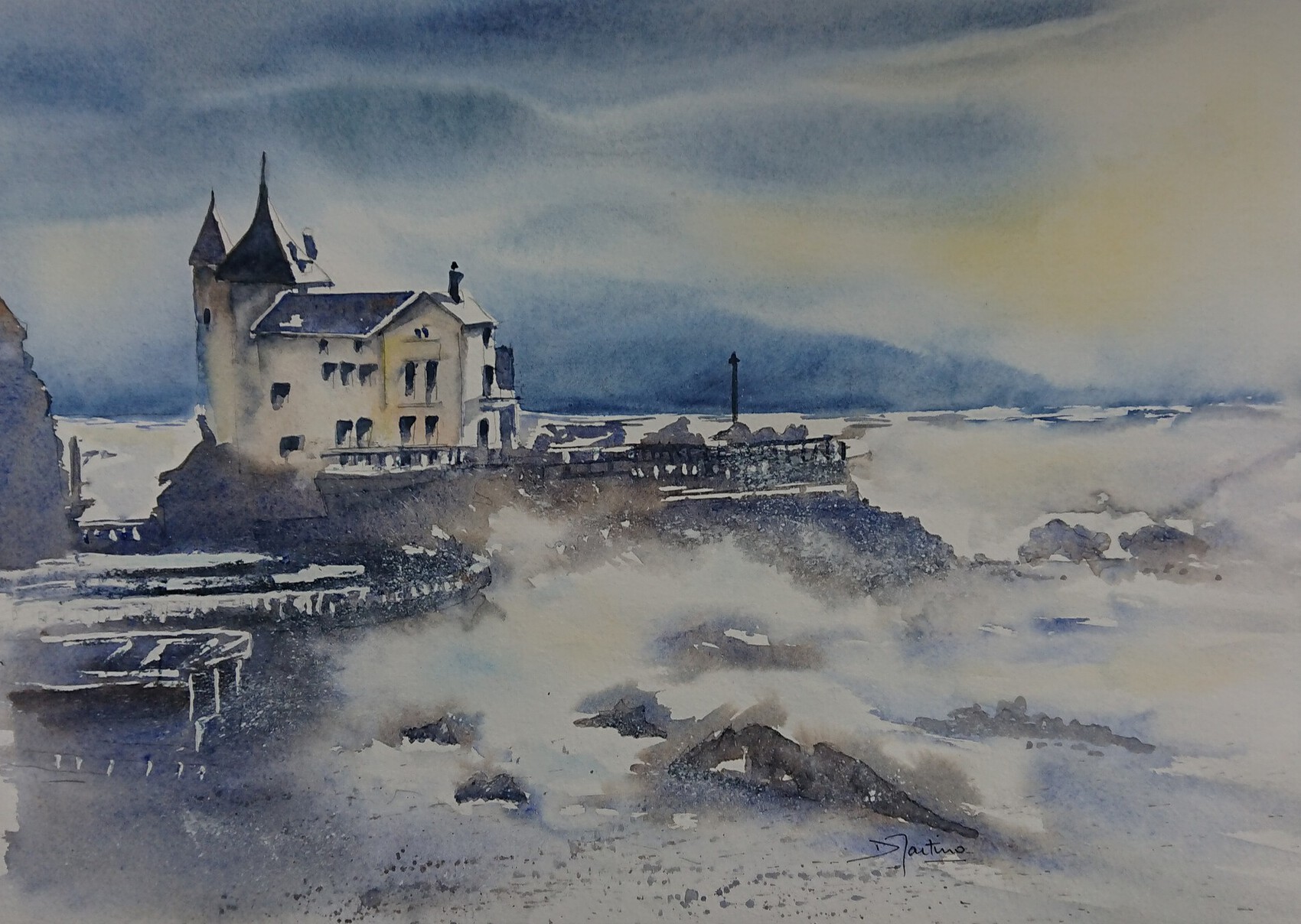 Félicitations pour vos sublimes aquarelles, celle ci représente Biarritz..et l écume de l océan.. Superbe !