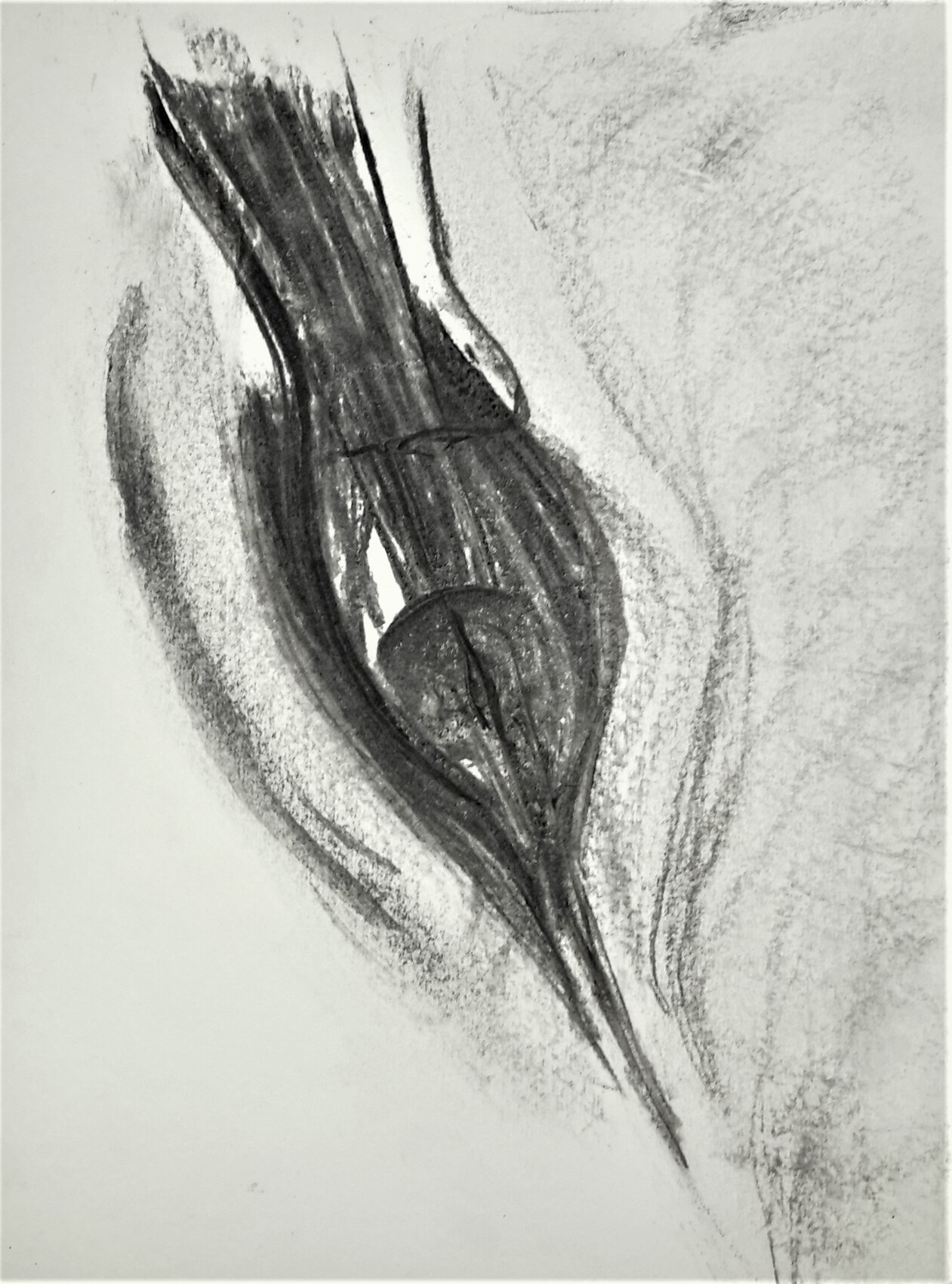 toujours au fusain sur papier dessin 224grs au format 24x32cm, œil ? sexe ? "Rien ne saurait être admis comme charnellement exaltant qui ne soit par avance ambigu" disait Michel Leiris.