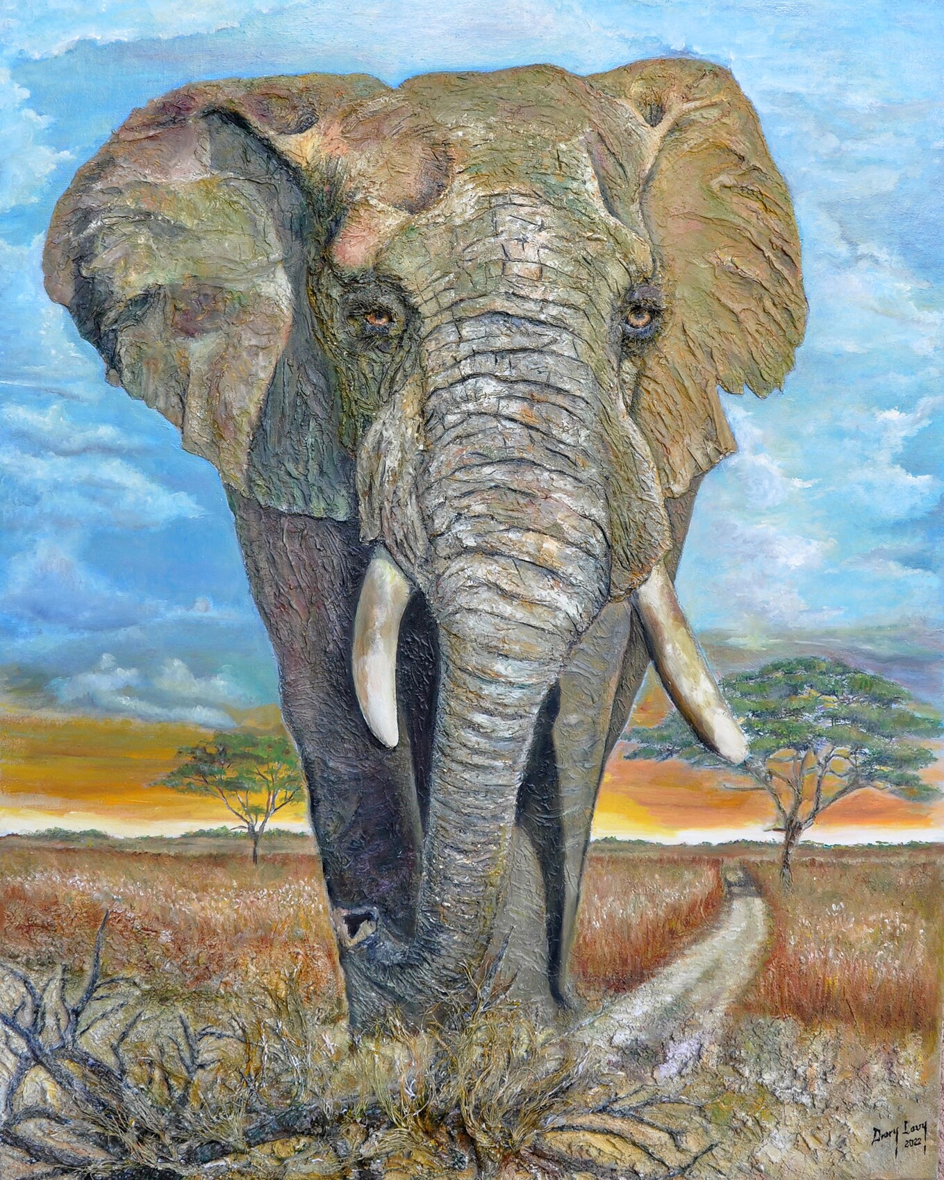 tout est superbe ! le rendu des matières , des yeux, le premier plan et la perspective de ce beau paysage et bien sûr ce bel éléphant ! un grand bravo !