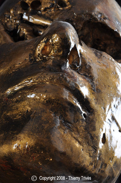 Sculpture Laiton.72x60cm sur socle en granit noir du Zimbabwe - 40 Kg - Création Novembre 2008 - Vision sur la paix dans le monde. L'oeuvre est réalisée à partir de douilles recyclées et de Laiton Fondu.