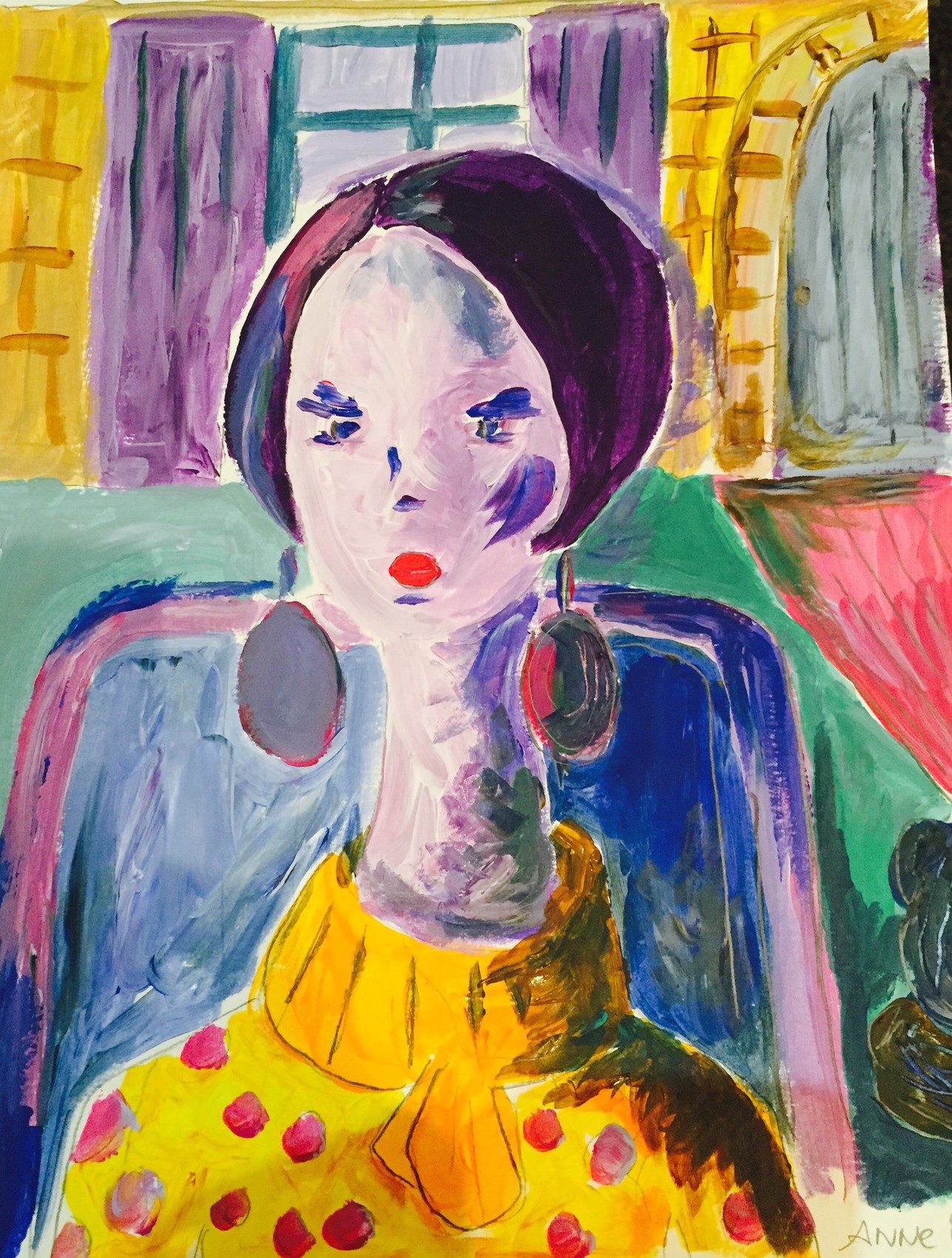 Et voilà je m ennuyais déjà en aquarelle et elle a eu l' idée de me peindre à l ´acrylique. Je vais finir par m ´endormir d'ennui, si elle sort ses pastels je l'assomme.