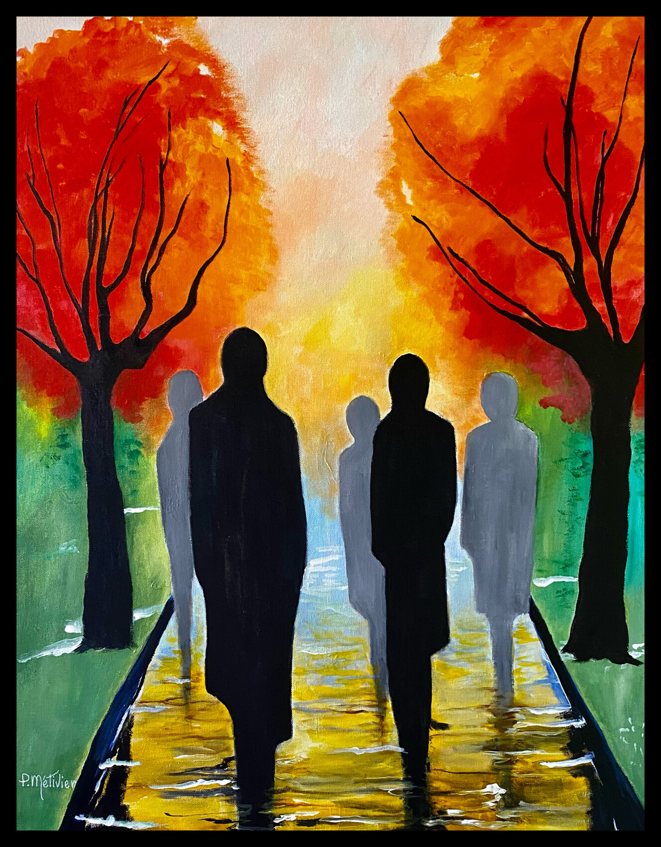 J'adore votre univers ! Vos couleurs chaudes la variété de vos scènes, cette toile tout particulièrement et sa touche de mystère, l'enterrement d'un ami, l'amitié qui rayonne encore...peut être.. peut-être pas.