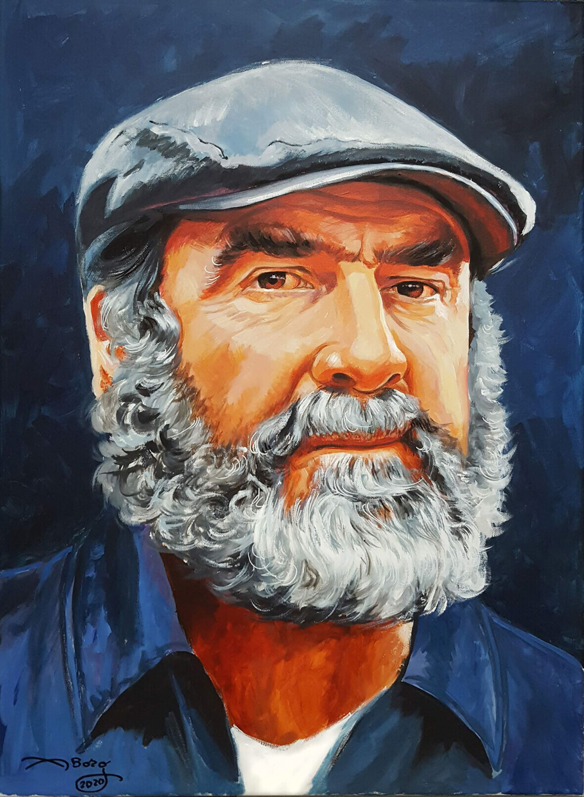 Portrait du footballeur acteur Eric Cantona acrylique sur toile 73x60cm