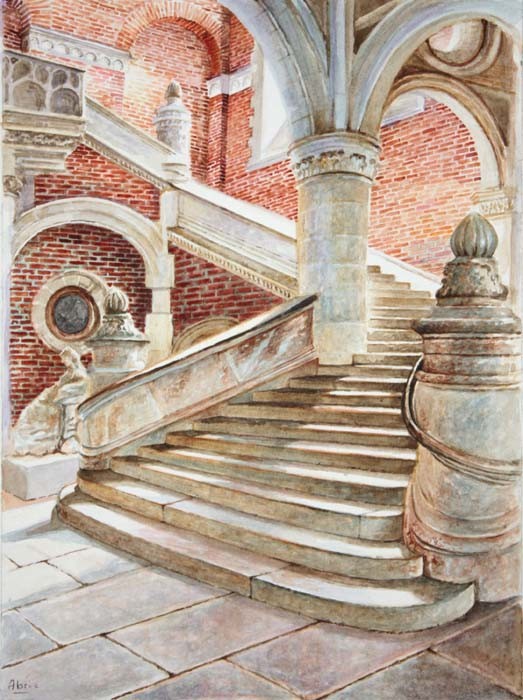 Aquarelle (23x31 cm) Escalier monumental du musée des Augustins, menant aux salles d'exposition