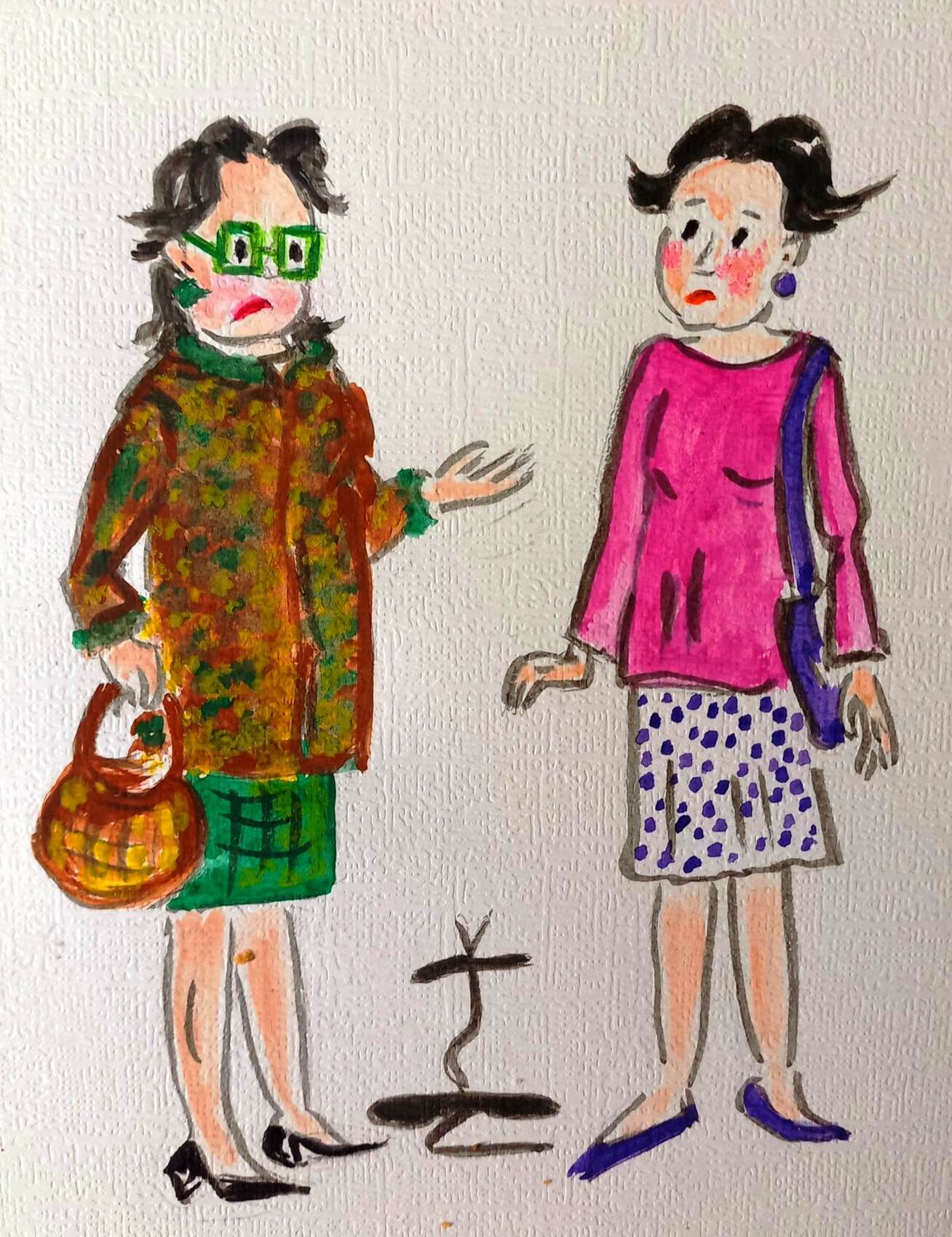 Chantal : Alors Simone, ce voyage à Paris ? // Simone : M'en parlez pas, j'ai failli perdre mon chat rue Pasteur avec tous ces rats ! // Chantal : Oh la rage !
