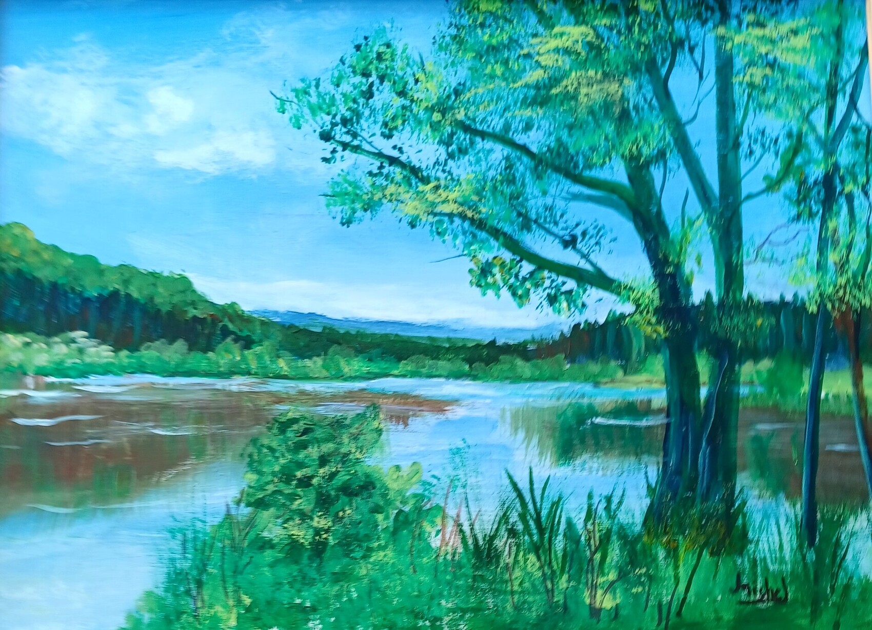 un étang très apprécié des touristes même un peu trop !! acrylique sur bois