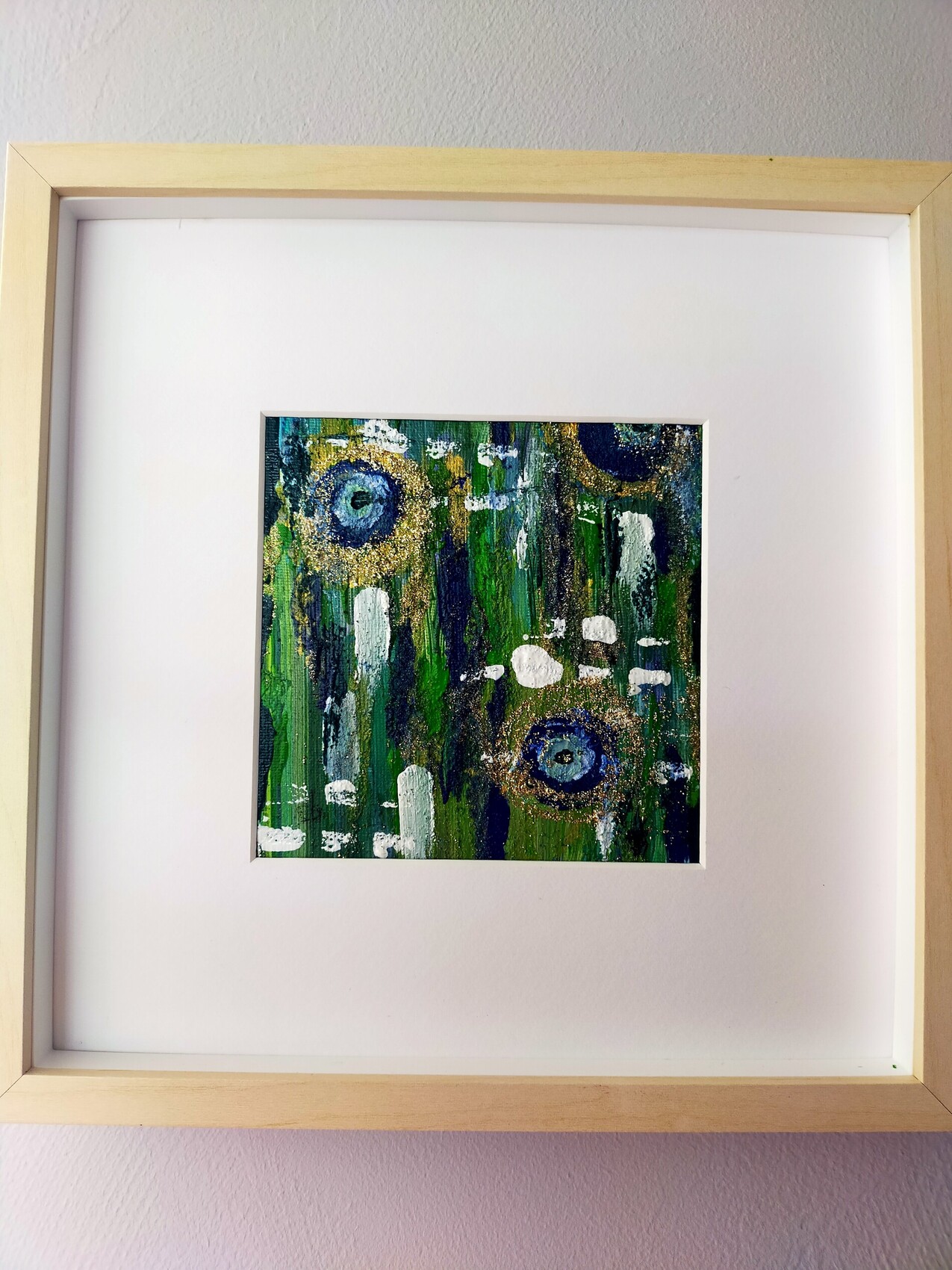 Comme à mon habitude je me suis laissée guider par mon intuition. J'aime marier les couleurs, jusqu'à ce que le mélange soit lumineux, agréable à regarder et incite à s'évader Cadre 40 par 40 Tableau 12 par 12' Acrylique