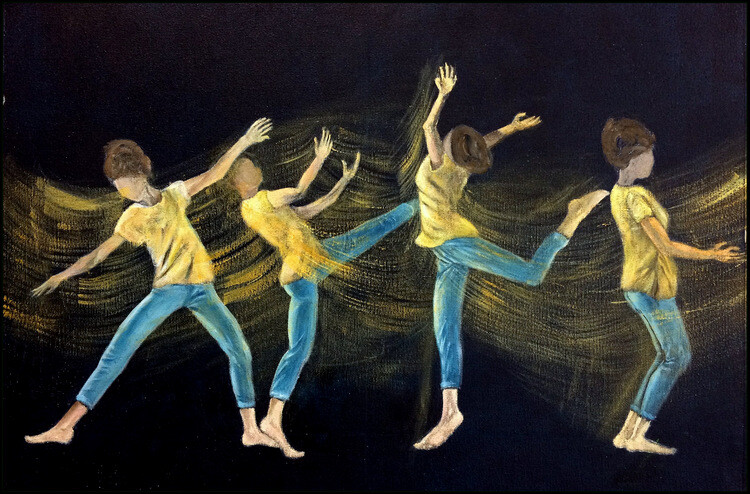 De très belles silhouettes pleines d'énergie. Très beau travail avec effectivement, en prime, les ondes créées par les mouvements qui donnent vie au tableau. Bravo!