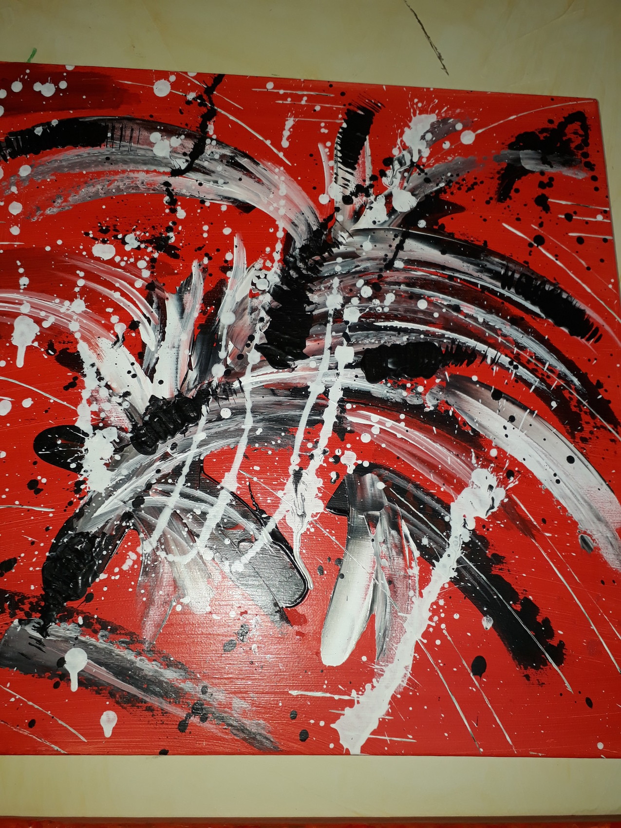 Très expressive ! Le rouge y est merveilleusement bien. On dirait un individu qui explose de Joie ! Beau travail.