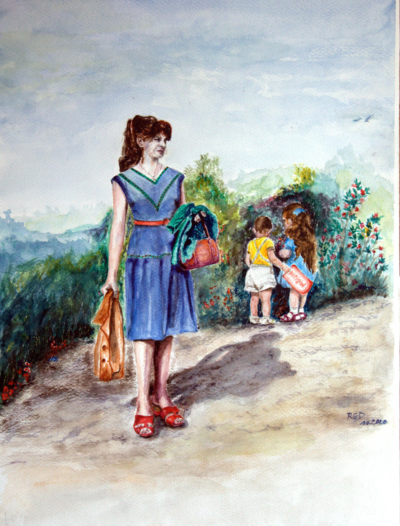 Ma mère, ma sœur et moi. aquarelle