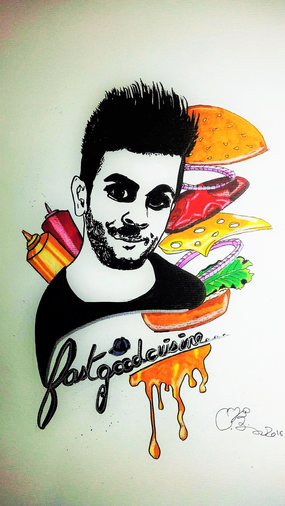 petit fan art d'un youtubeur que j'aime bien aux promarkers et encre de chine