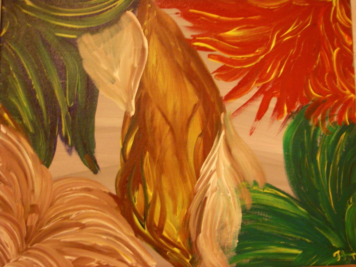 Pour faire danser les couleurs et les faire se ressembler. Acrylique sur toiles format 32 x 40 cm environ.