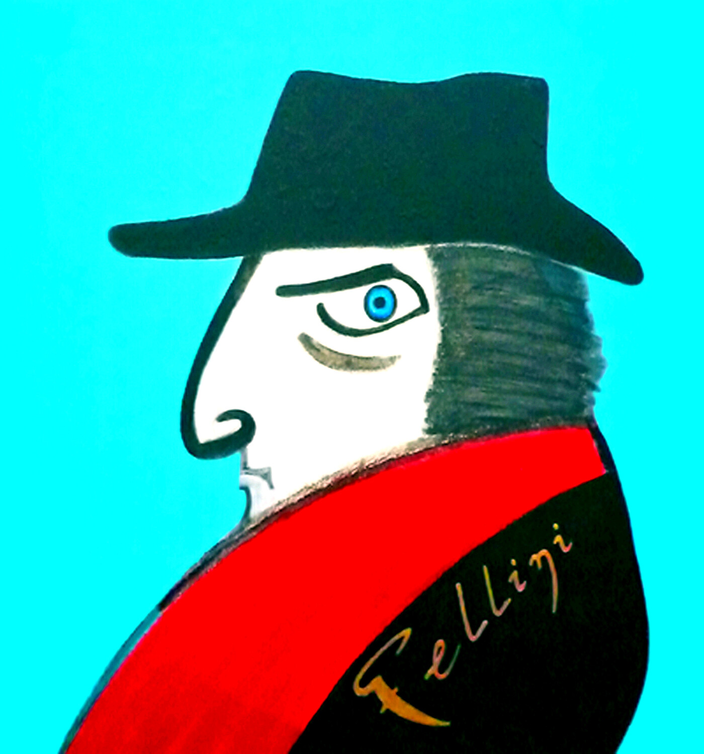 Hommage à Federico Fellini Acrylique sur bois 72 cm X 66.5 X 4 cm Année : 2019 J'ai réalisé ce tableau dans une porte c'est assez originale. la première face : Fellini la deuxième face : Picasso. Ce tableau peut être posé sur un meuble ou accroché au mur. Un trou dans le cadre permet la permutation des 2 œuvres. j'ai crée ce système d'accrochage pour pouvoir permuter ces deux œuvres d'art. Fellini avait une véritable passion pour Picasso c'est donc dans cet état d'esprit que j'ai vou