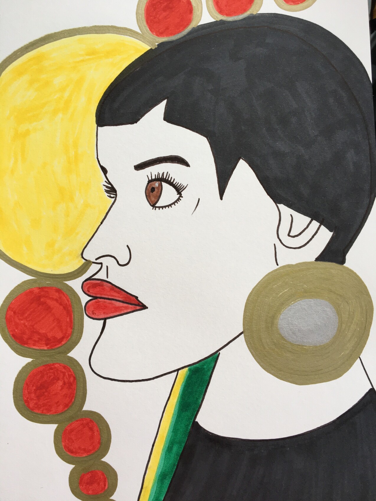 Portrait Femme à la bulle jaune Original unique signé Format A4 Dessin feutre Le 25/03/2023 Figuratif stylisé
