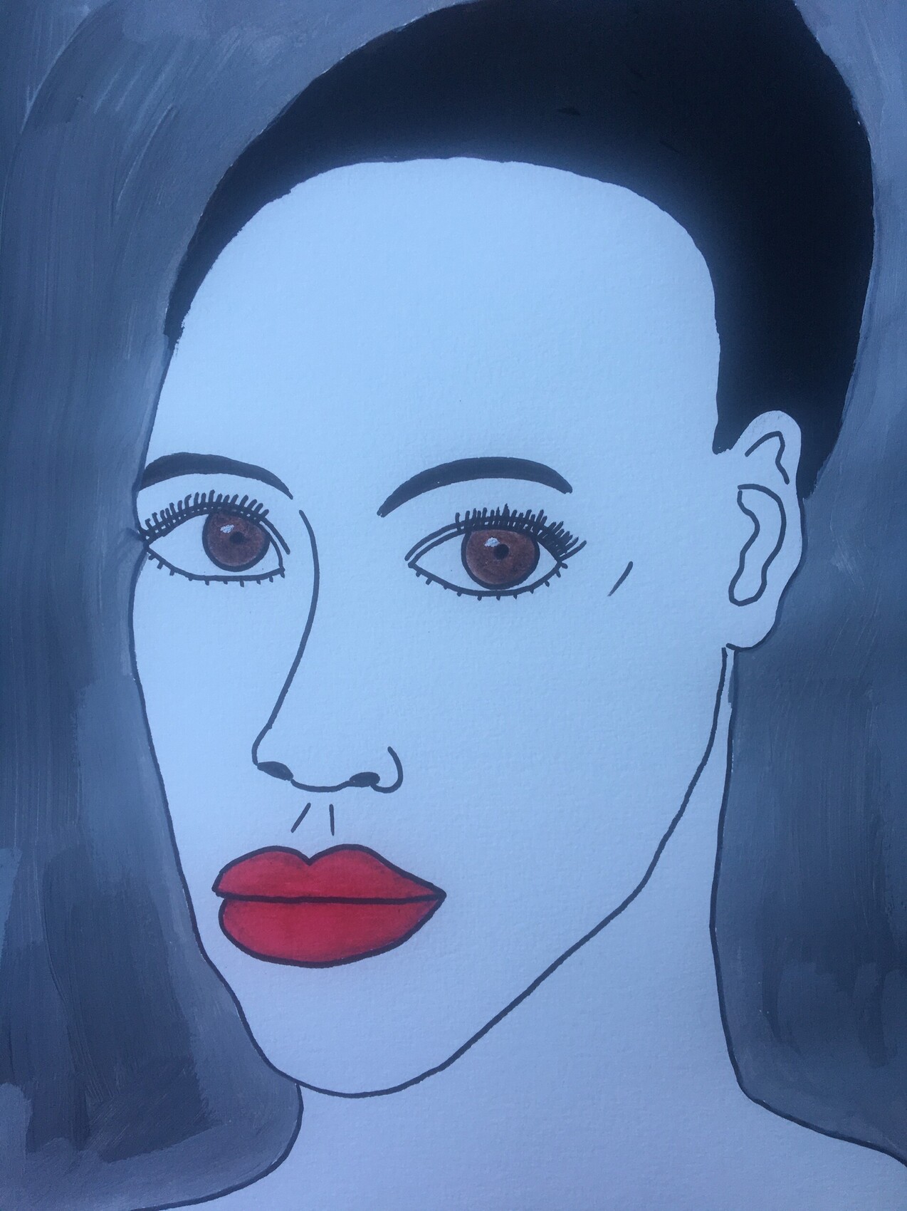 Visage féminin Femme aux lèvres rouges Original unique signé Format A4 Dessin feutre et acrylique Le 05/06/2023 Figuratif
