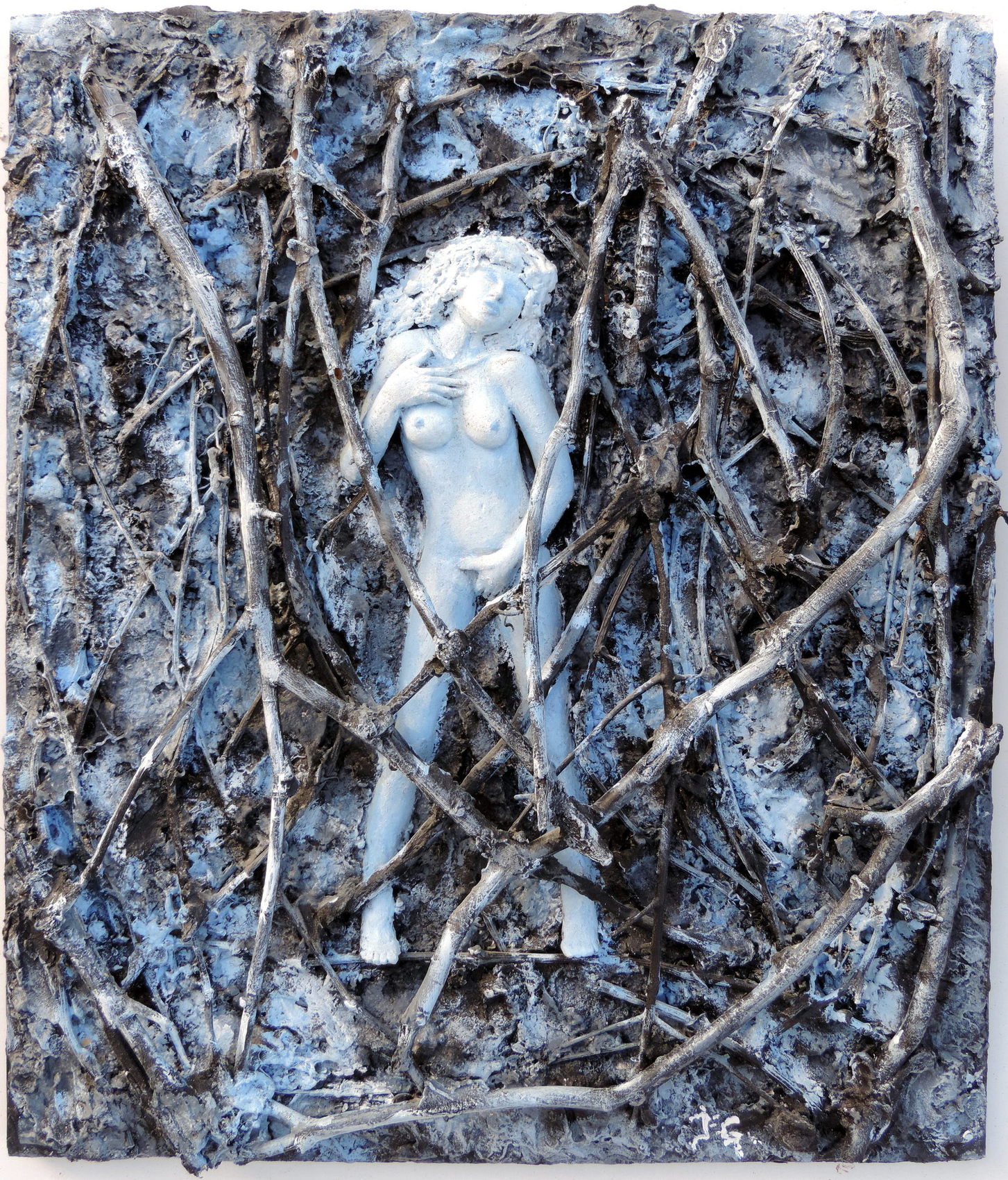 Femme dans les bois "nu" JfG Jean-François Gantner 36 X 52 Tableau en relief papier maché et ajout de matériaux
