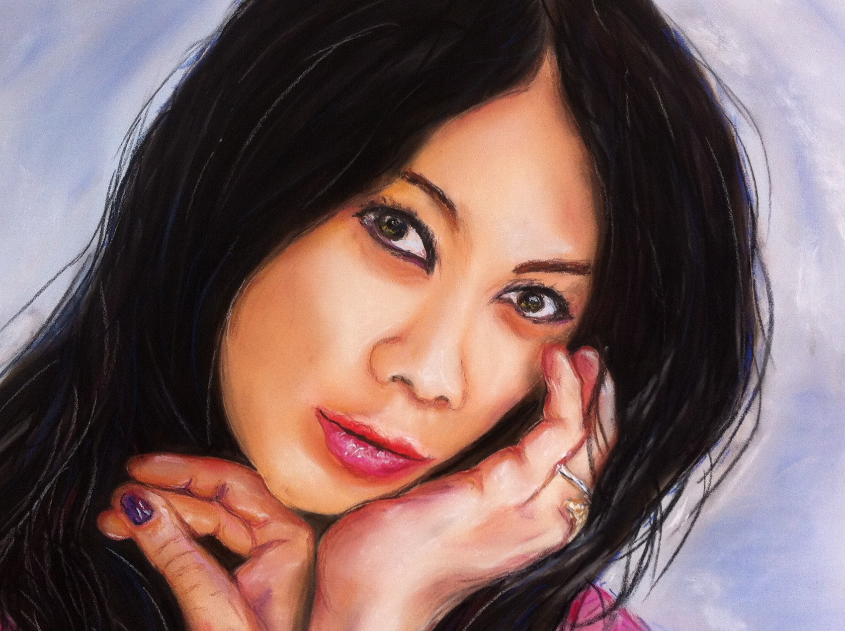 Je cherchais à représenter une Asiatique, et je me suis lancé sur ce portrait, en essayant de mettre en valeur la douceur du regard, et aussi à faire un travail particulier sur la position des mains. pastel sec , 30 x 40