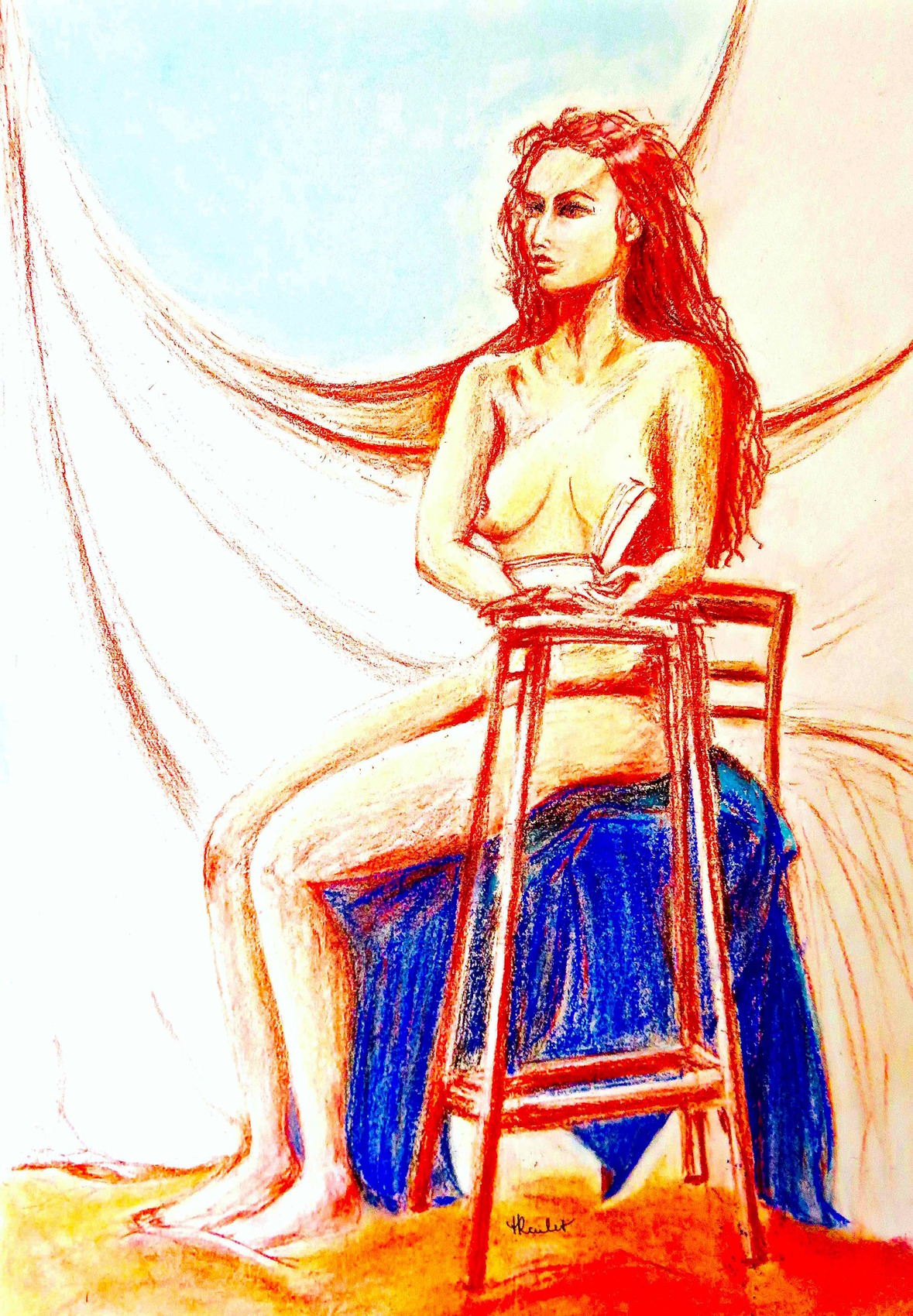 Femme nue assise avec un livre Annette / Drawing A naked seated woman with a book