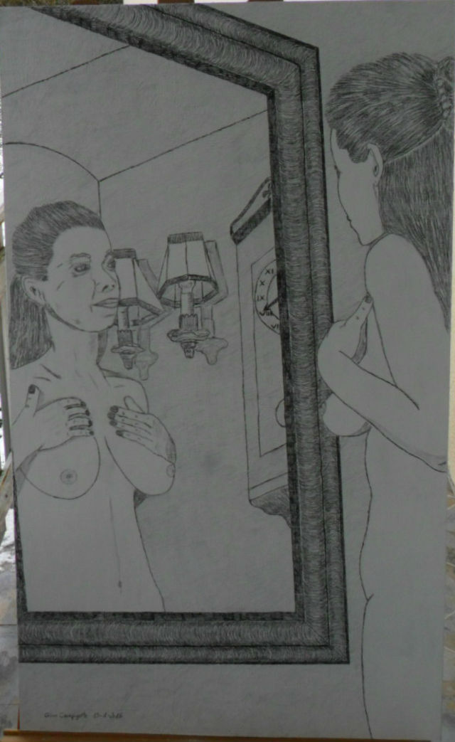 J'ai dessiné cette nue devant son miroir.Avec plusieurs sortes de crayons sur une plaque d'isorel.Pas de livraison, à venir chercher sur place. Hauteur 89 cm.Largeur 53 cm.Epaisseur 0,5 cm.Poids 2,580 kg. Définition : ISOREL est un produit naturel. Ce panneau de fibres dures est obtenu par traitement du bois sous haute pression. Son procédé de fabrication par « voie humide » ne nécessite aucune adjonction de liant synthétique contenant de l’urée – formol. Les panneaux ont une surface lisse et