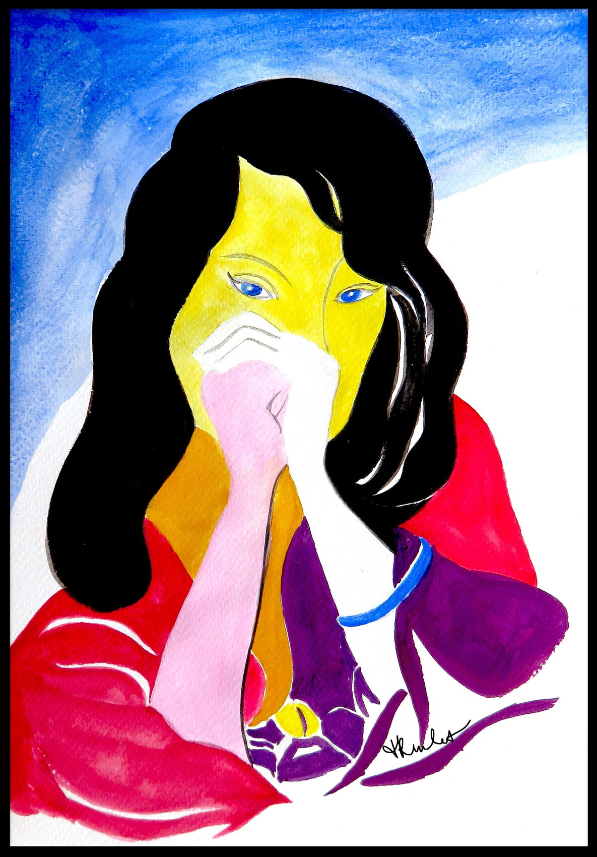 Gouache, 2014, 30 x 20 cm. 1ère peinture en aplats de couleur = Muriel Reulet = Gouache paint, 2014. 1st paint in flat areas of colour.