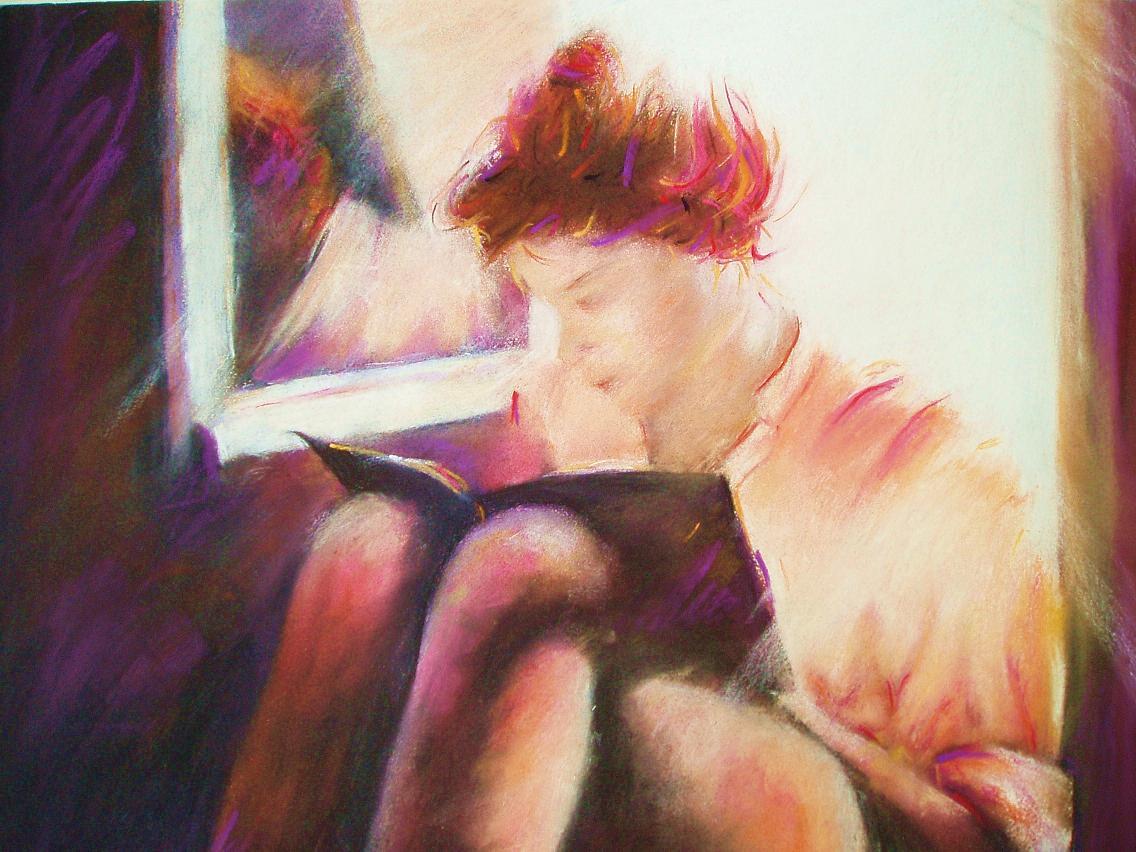 pastel de femme , jeux d'ombre et lumière. couleur ocre ,jaune orange