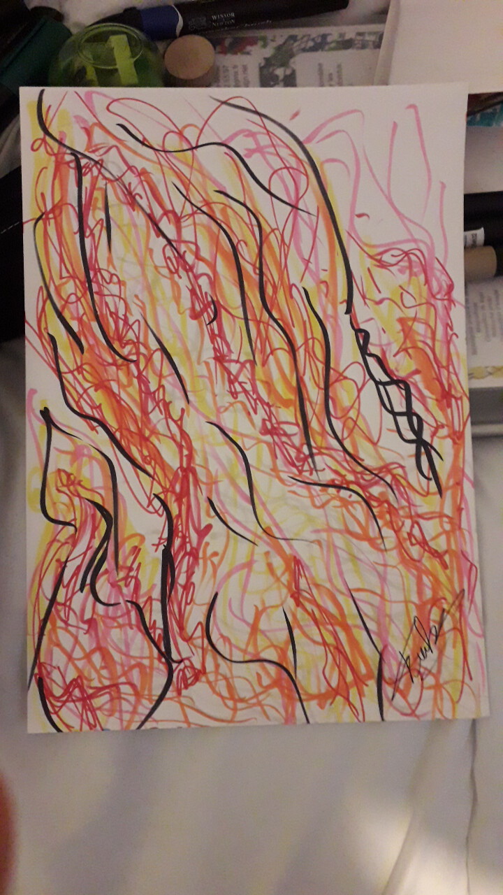 illustration simplifié d'une flamme brulante, j'ai utiliser de l'orange brillant pour son intensité du jaune un rouge rubis pour donner cette sensation de chaleur.