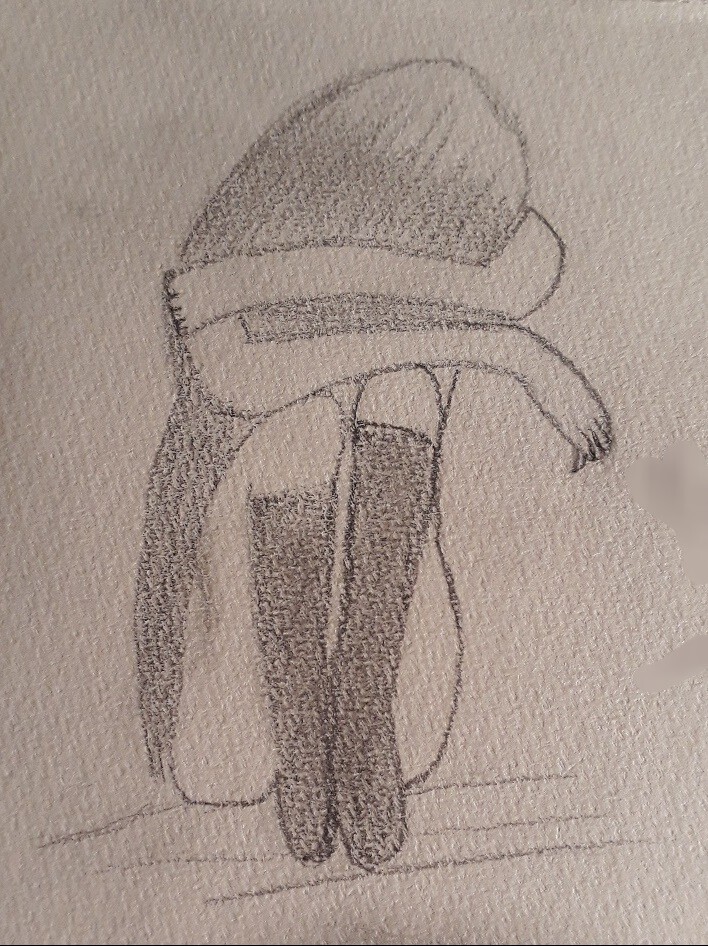 Dessin d'une fille qui pleure fait au crayon à papier HB 2 avec comme inspiration des images sur internet.