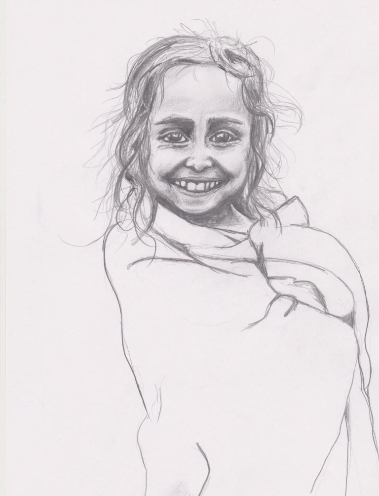 A4 crayon de papier. Pour Etzi : une petite pensée pour votre dessin, l'algérienne. En dessinant cette enfant, j'y ai vu la fillette qu'avait été cette femme, bien belle dans son âge mûr :)