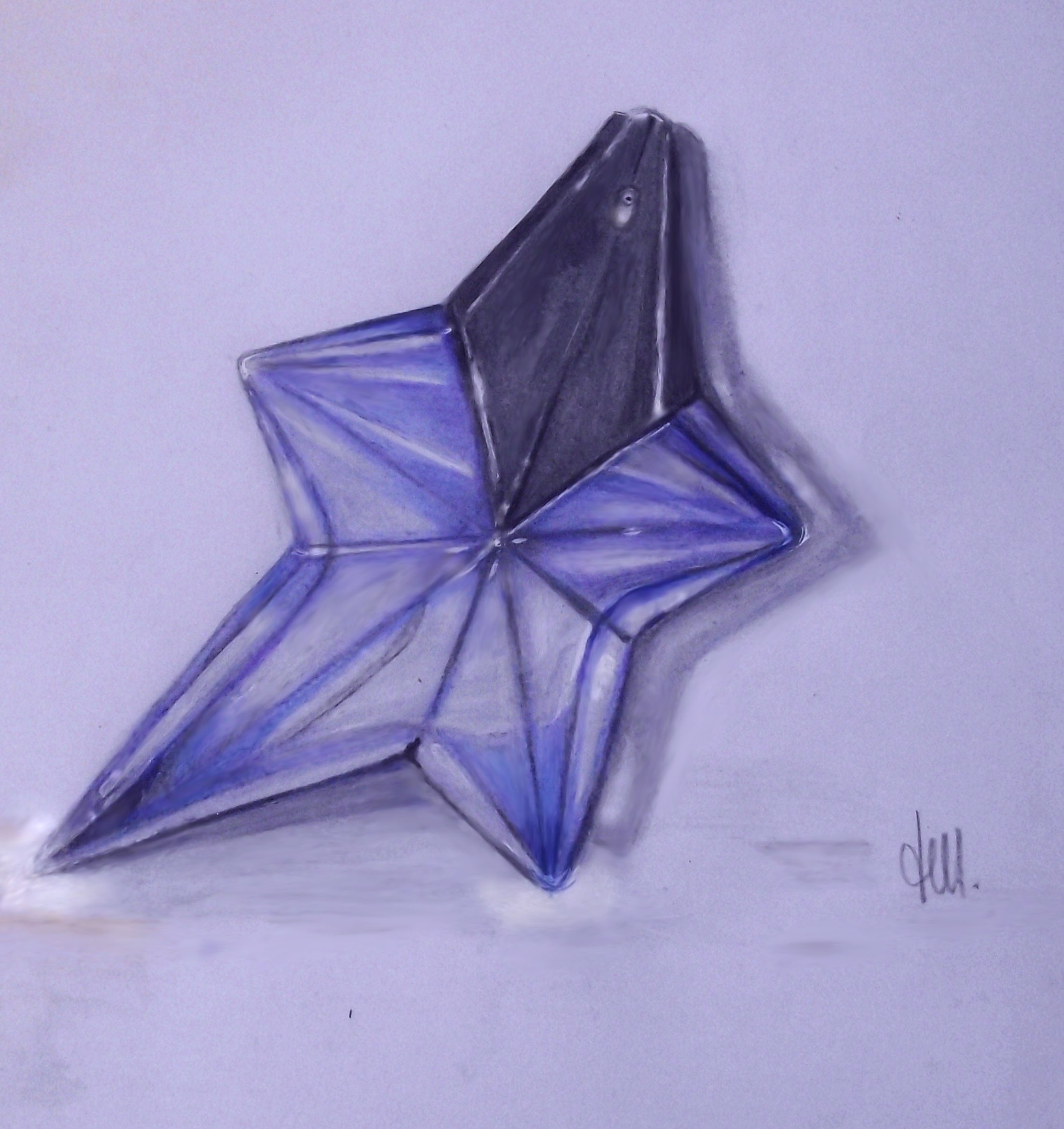 Flacon de parfum, crayons de couleurs Faber castell et Brushmarker, sur papier bristol, 2018