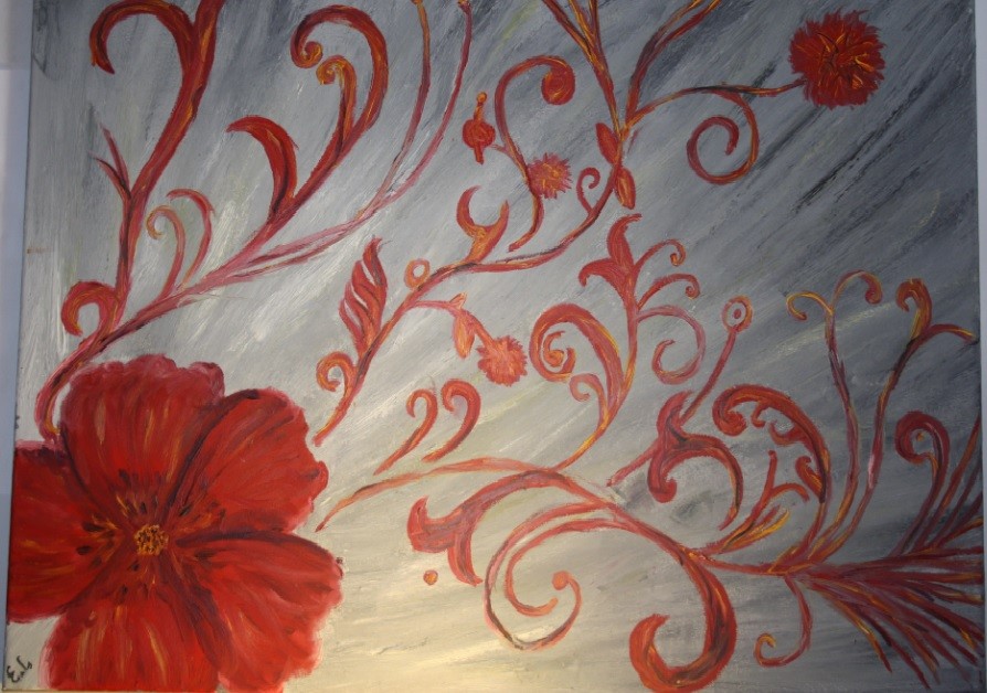 Peint sur toile. Peinture originale réalisée à l'huile. Tableau "fleur en arabesque " Dimensions :70*50 cm. peinture contemporaine Frais de port offert. Envoi dans un carton, toiles protégées par papier bulles.
