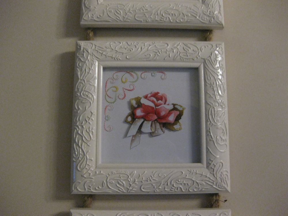 Fleur en image 3d sur fond brodé présenté en triptyque
