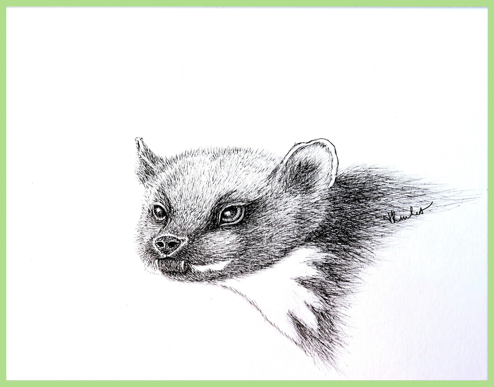 Fouine (Martes foina) / Drawing A Beech marten’s portrait