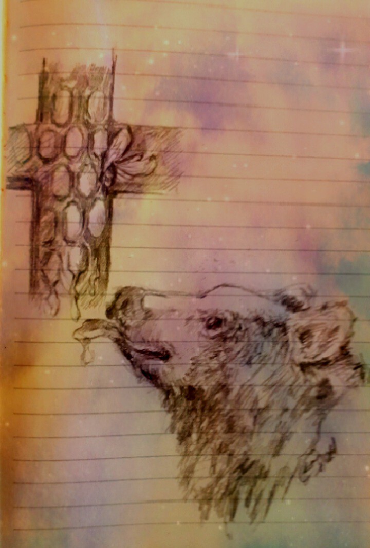 Les paroles agréables sont un rayon de miel, douces pour l'âme et salutaire pour le corps. inspiré du livre des Proverbes 16:24 et du livre d'Esaïe 59:11Nous grondons tous comme des ours...Nous attendons la délivrance, et elle n'est pas là, Le salut, et il est loin de nous. Car nos transgressions sont nombreuses devant Dieu, Et nos péchés témoignent contre nous. Pourtant Son amour ne faillit jamais. Dessin rapide avec intégration numérique