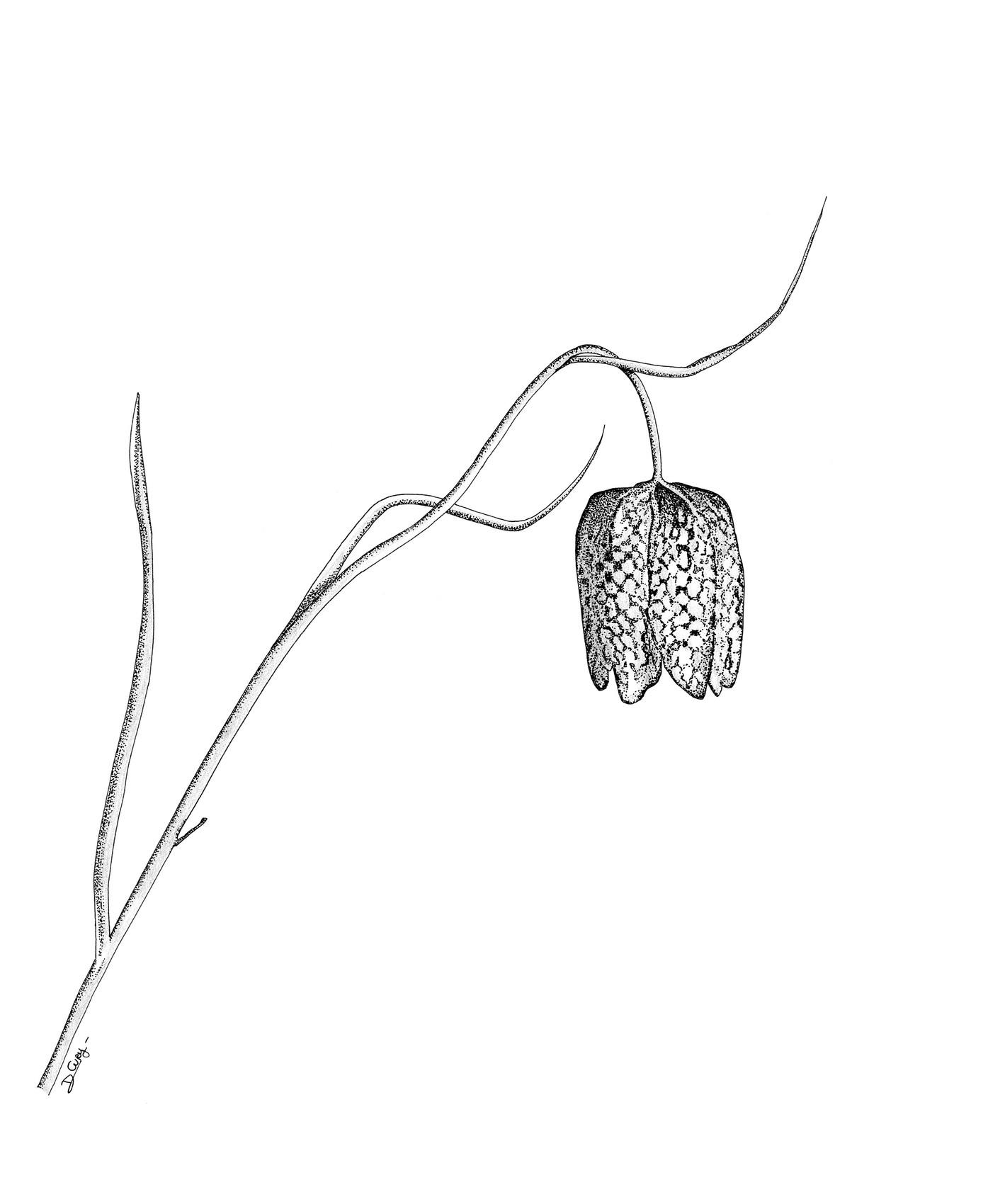 Fleur printanière peu courante de milieu humide, encre de chine. D'après une photo de Gil Gautier.