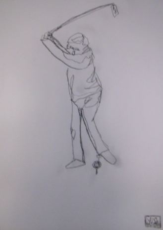 issue d une série de 18dessins faite sur le golf dessin d une ligne charbon 1mX0.7m