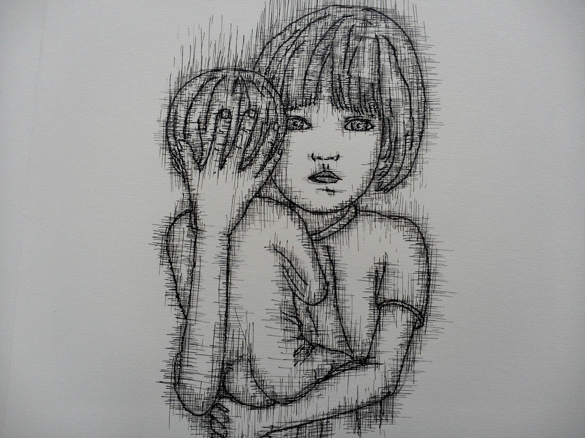 Enfants : Dessin à l'encre de Chine et crayon sur papier d'Arches (28 x 38 cm)