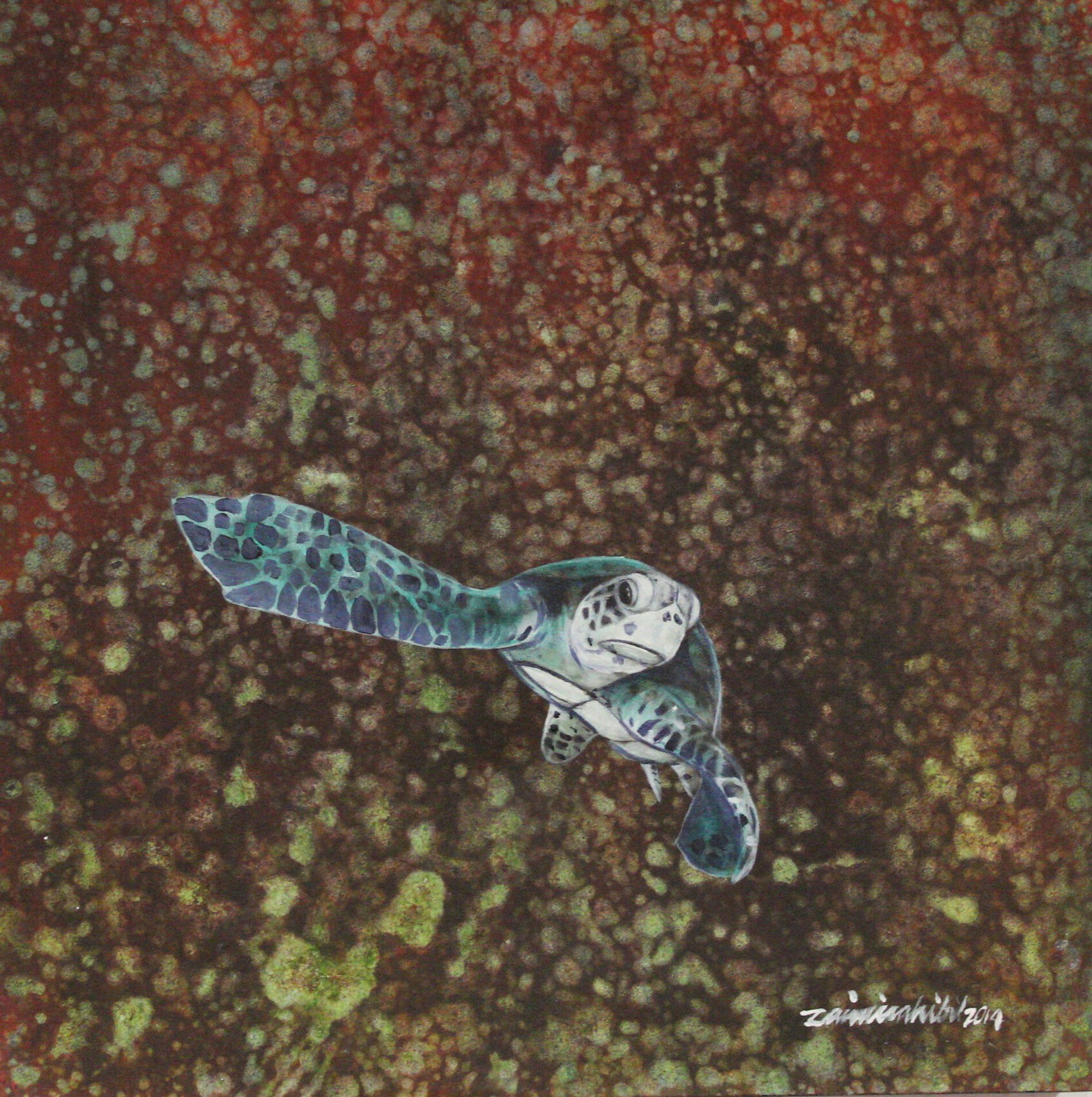 Peinture à l'acrylique de Zaimie Sahibil, artiste malaisien. (2014) Dimensions : 56 x 56,5 cm Livraison offerte Sahibil est descendant de Sabahan of Bajay Laut, peuple surnommé "sea gypsies". Ils sont connus pour leur culture et leur lieu de vie : des logements en pilotis au-dessus des mers sur des petites îles autour de Bornée. Diplômé en 1997 du Bachelor des Beaux Arts (UNIMAS), en 2008 du Master en Technologie de des Arts Visuels (UMS) et en 2014 du doctorat en Technologie des Arts Visu