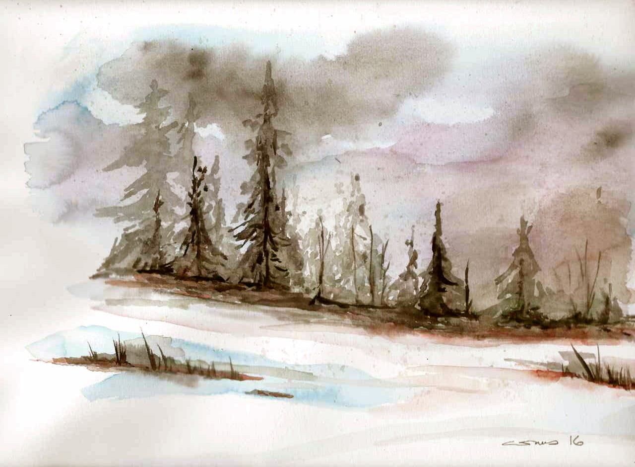 De jolis tons pour une grisaille! Belle aquarelle conus!