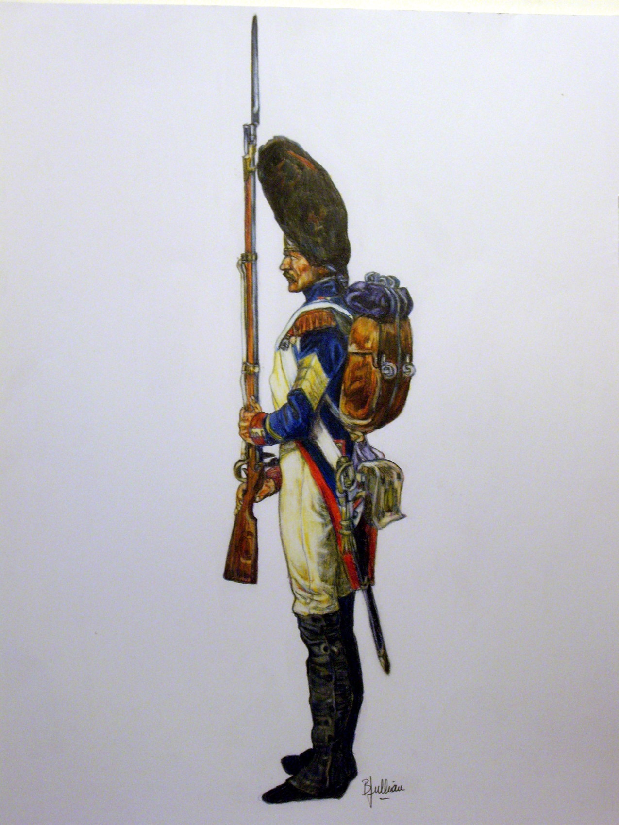 DESSIN COULEURS sur Papier CANSON Format Raisin (50 x 65 cm) , realise au crayon sec par l'Artiste Bernard JULLIAN DESSIN ORIGINAL - avec signature de l'Artiste " NAPOLEON - GROGNARD"
