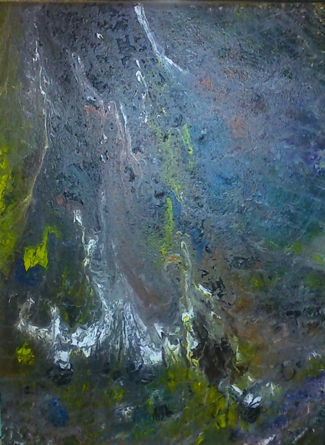 Grumeaux de Lave, Création originale, peinture acrylique fluide, toile coton sur châssis, 30 x 40 cm.