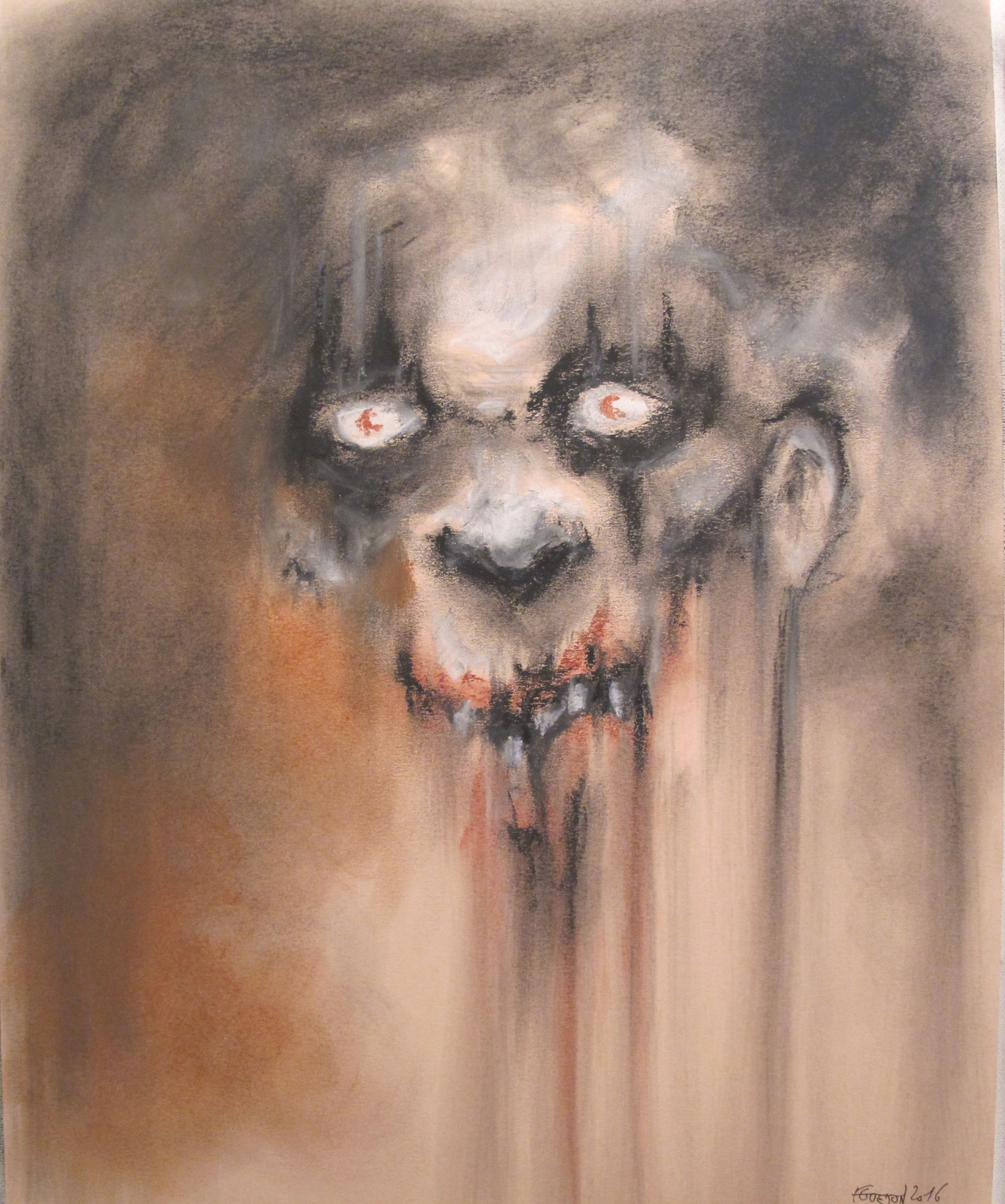 (Pareil...Bouh! qui s'est fait fracasser????) Les yeux sont dingues sur ton dessin on dirait qu'ils proviennent d'une photo...tu as "aquarellé" pour obtenir cet effet?