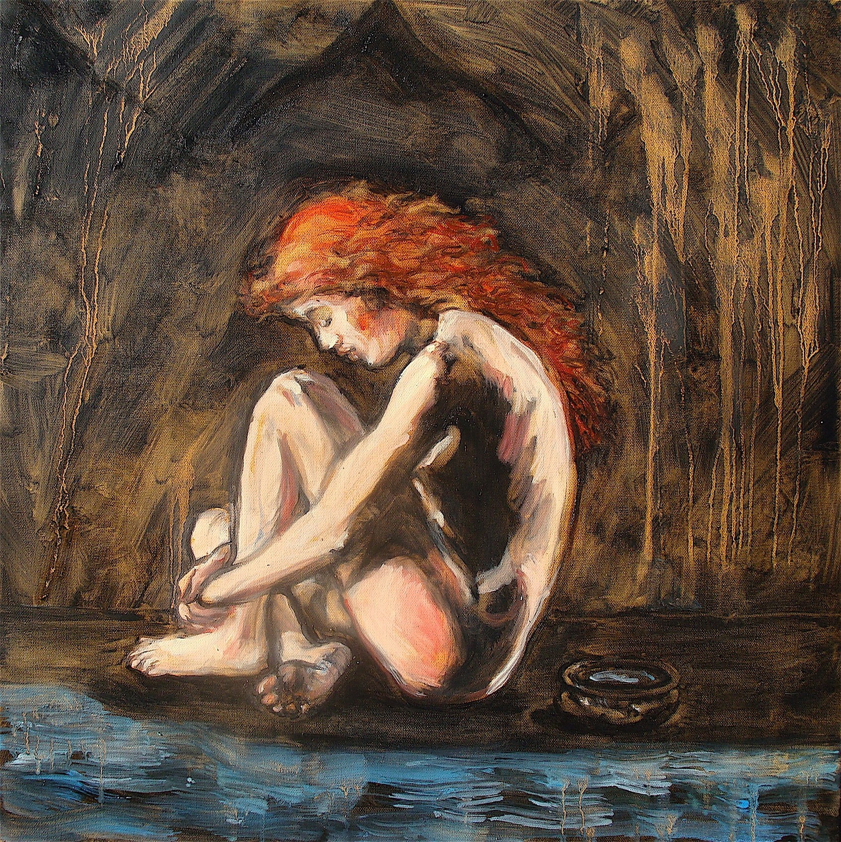 Méditative dans son cocon , comme dans un oeuf, elle est très touchante. j'aime !