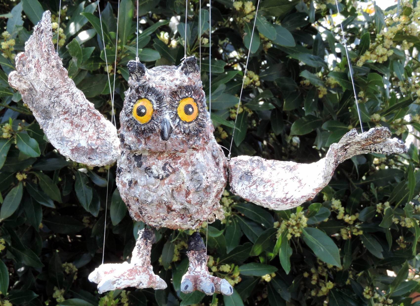 hibou "Petit Duc" marionnette à fils papier maché JfG Jean-François Gantner