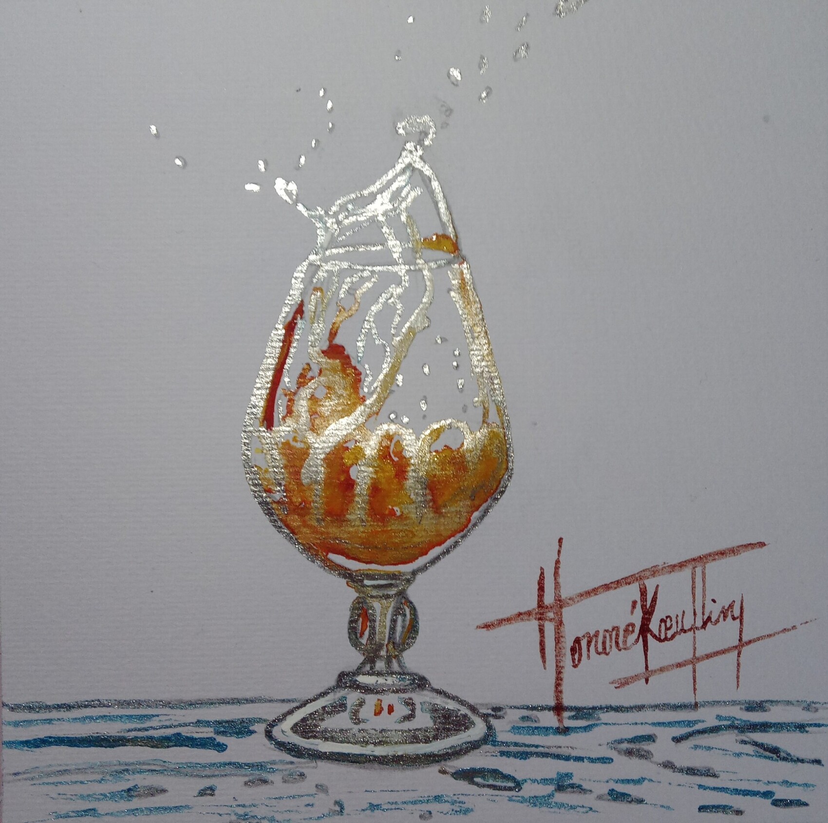Peinture aquarelle, aquarelle métallique. Support papier aquarelle. Format 19×19 cm. Cognac en plein effervescence...