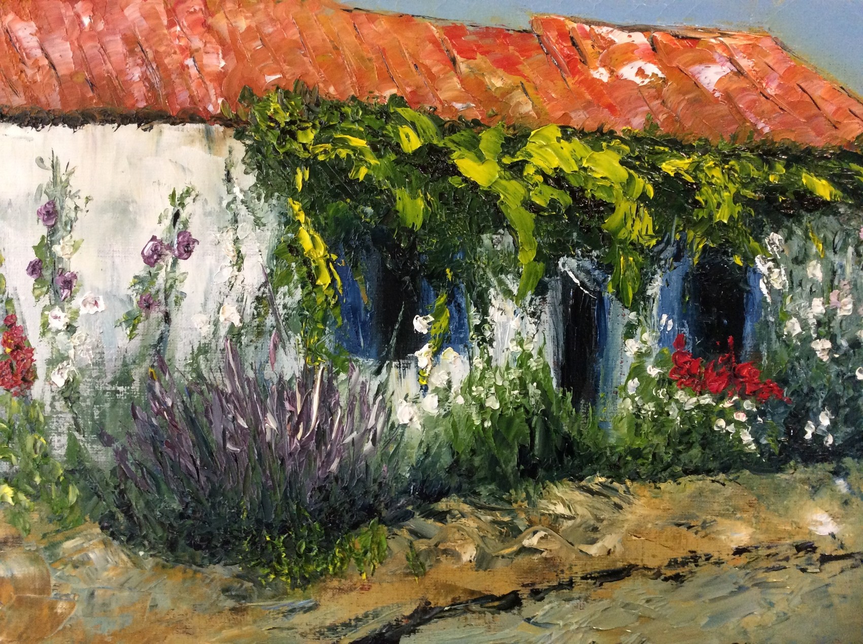 J'adore quand il y a de la matière! Et sur l'ile de Ré , il y a ces belles roses trèmieres que l'on voit sur le côté de la maisonnette ! Bravo