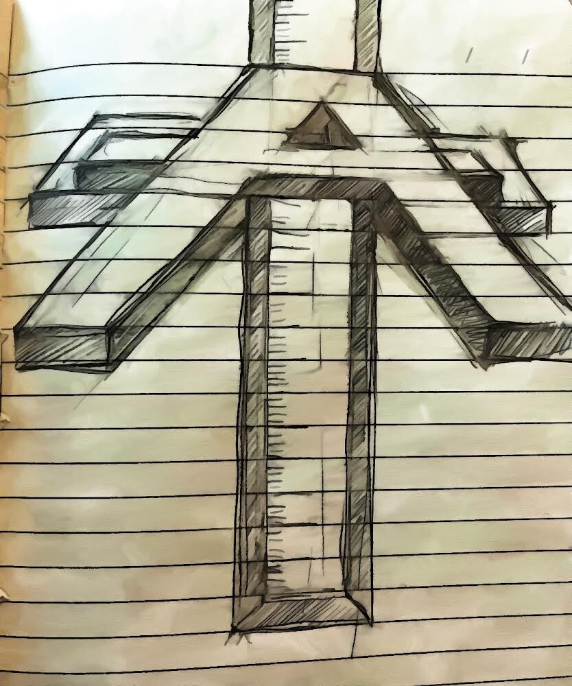 Croix représentant une règle basée sur l’amour véritable qui se donne comme Christ à donné sa vie, afin que par sa mort nous ayons la rédemption de nos péchés. Par sa mort et sa résurrection, Il donne la vie éternelle à tout ceux qui croient en Lui. Deux autres croix viennent former la lettre (A) représentent l’unité des frères dans l’amour auquel nous tendons. Dessin avec effet numérique