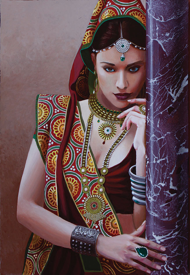 Indienne appuyée à la colonne